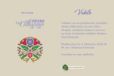 Vljudno vas vabimo na večer, posvečen spominu in umetniškemu ustvarjanju, kjer bomo predstavili pesniško zbirko Odhajanje, avtorice Silve Ocepek (1927–2015). Skozi verze se bomo sprehodili po življenjski ...