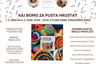 Drage pustne maske! Pokrajinski muzej Ptuj – Ormož vas na pustni soboti, 7. in 14. februarja 2026, vabi na muzejsko pustno dogajanje za družine. Ob 10., 11., 12., 13., 14. in 15. uri se bomo družili ...