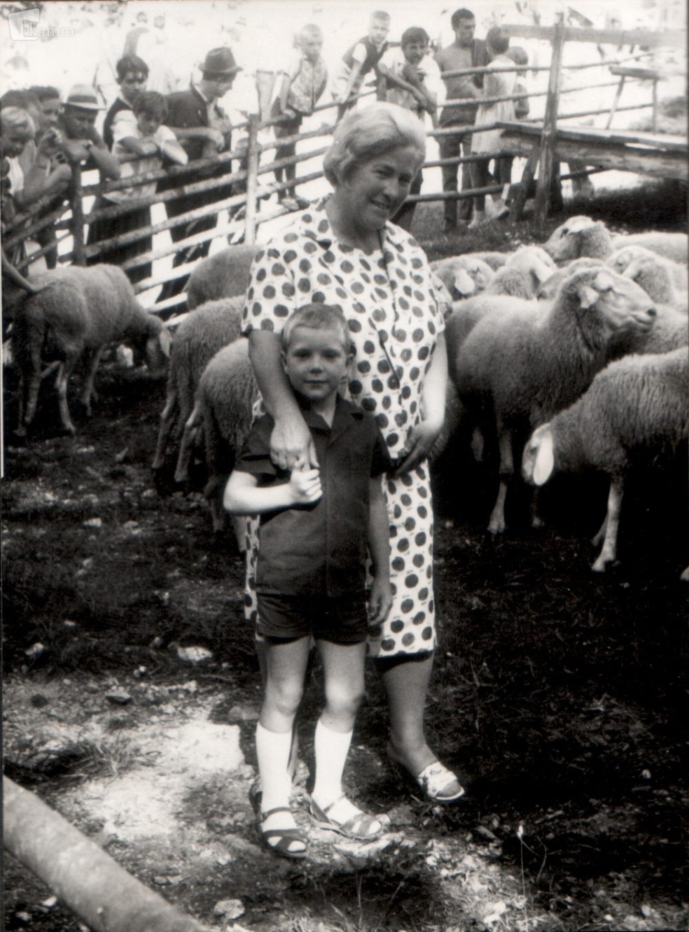 Ovčarski bal, tradicionalni praznik pastirjev na Jezerskem, leta 1961. Bal že od leta 1955 obuja stare običaje ob jesenskem prigonu drobnice v dolino. Jezerski ovčarji so odšli na planino okoli svetega Petra, to je okrog 29. junija; običaj je bil, da je gospodinja pred odhodom na planino ovčjo čredo poškropila z žegnano vodo, pastir pa je rekel: »Bog nam dej gosto trav’co rast, sveta Neža pa naj nam pomaga jarce past’.« Jezersko, ki je od leta 1850 znano po vzreji avtohtone pasme jezersko-solčavskih ovc, ima ovco tudi v občinskem grbu. Na Jezersko se je Bogdan Malec, deček na fotografiji, podal vsako leto. Takoj po nastopu šolskih počitnic sta ga starša v Kopru posedla na avtobus za Jezersko, kjer ga je pričakala nona Hermina. Pri njej je deček preživel vse počitnice. Jezersko je bilo tedaj znano klimatsko zdravilišče, zato se je tja, po hudem, neozdravljivem obolenju, preselila tudi triinštiridesetletna Hermina. “V brk” slabim zdravniškim prognozam je na Jezerskem dočakala zelo visoko starost.
