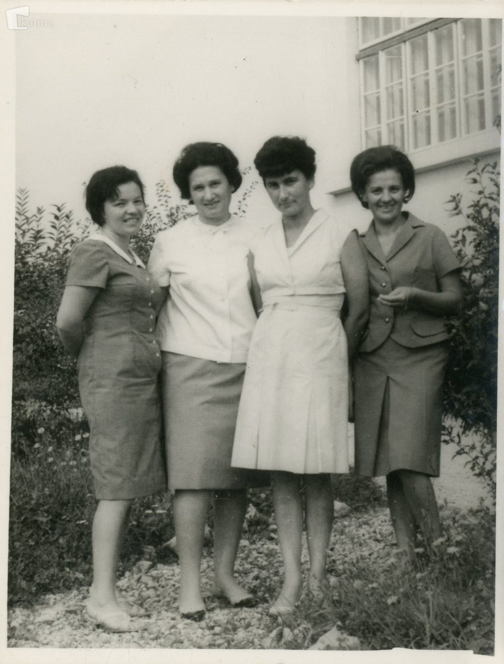 Novomeške in dolenjske učiteljice pred podružnično osnovno šolo Mali Slatnik v šolskem letu 1961/62. Od leve proti desni: Ivanka Mestnik (OŠ Katja Rupena, danes OŠ Center), Mira Kovač (OŠ Žužemberk), Marija Bajuk (Sinjur), Ljudmila Lah (OŠ Bršljin).