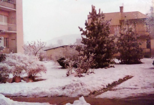 Na fotografiji je del naselja Vevče leta 1980. Fotografija je nastala pred blokom Papirniškega trga 11. Pogled nam seže na zasnežen travnik. V ozadju lahko vidimo Vrtec Pedenjped-enota Vevče.
