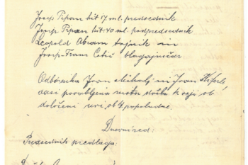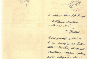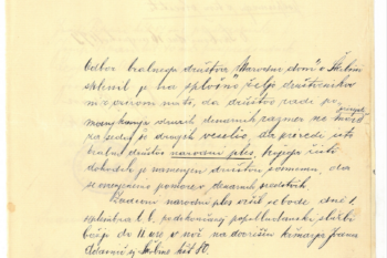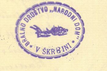 Okrajno glavarstvo v Sežani je 21. avgusta 1895 dovolilo “društveno veselico s plesom” pod pogojem, da se društvo ravna po naročilih županstva. Županstvu v Škrbini pa pošilja navodilo, da “ukrene potrebno za vzdrževanje javnega reda”. Na dokumentu vidimo modri žig okrajnega glavarstva. (SI PAK KP 633 T. E. 262 Bralno društvo Narodni dom Škrbina, 1895)
