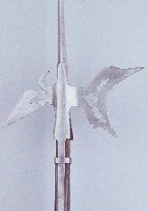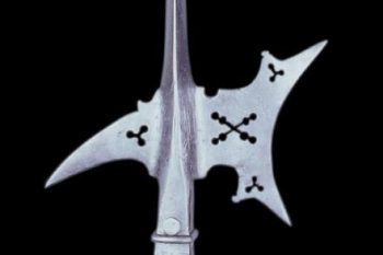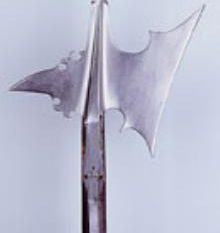 To je pehotno orožje na drogu. Helebarda je nastala v 14. stoletju iz pehotne sekire z dodano bodno ostjo in kljunom ali kavljem. Uporabljali so jo za sekanje, bodenje ali snemanje konjenika s konja. Od sredine 16. stoletja dalje je list sekire postajal vse manjši, helebarda je dobivala vedno bolj dekorativne oblike in se v borbi vedno manj uporabljala. Spremenjena funkcija in posledično tudi oprema in oborožitev telesnih stražarjev ter nočnih čuvajev je narekovala bolj dekorativne oblike in bogatejši okras: ornamente, grbe, iniciale itd.