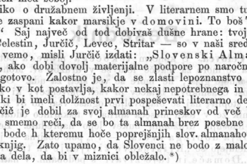 Ob koncu gimnazije so sošolci Fran Celestin, Franjo Marn in Josip Jurčič izdali almanah Slovenska vila v enem zvezku. Na naslovnici je bilo zapisano: izvirne slovenske povesti, novele, balade, romance in pesmi. Almanah je izpričeval pogum maturantov, da so se lotili izdaje ter da so v almanahu dali na prvo mesto pripovedno prozo. Avtorji so v predgovoru posvetili knjigo mladim ljudem, ki jim je primanjkovalo slovenskih knjig. Najpoglavitnejši cilj te zbirke je bil želja snovalcev, da bi se med slovenskim občinstvom vzbudilo več »pravilnega estetičnega razumevanja literarnih proizvodov«.