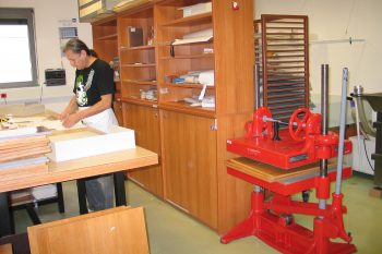 Nekatere večje ljudske knjižnice so imele v svojem sklopu tudi knjigoveznico in zaposlenega knjigoveza. Njegovo delo je zajemalo pripravo knjižnih zvezkov ali periodike za vezavo, manjša popravila platnic in knjižnega bloka ter razna druga dela, ki jih je lahko opravil v svoji delavnici.