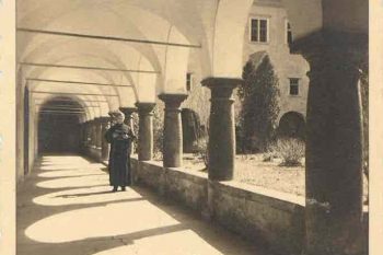 O samostanu v gotski dobi je bolj malo znanega. Obsegal je le vzhodni del sedanjega samostanskega kompleksa. Bil je enonadstropen in še ni zapiral notranjega dvorišča. V 14. in 15. stoletju so samostanu dozidali še južni in del zahodnega trakta. Do začetka 16. stoletja se je samostansko dvorišče zaprlo, sredi stoletja pa je poslopja prizadel požar. Takrat so podrli kapelo sv. Antona Padovanskega in v cerkevni ladji odstranili baldahinska oltarja. Obnovili so tudi samostanska poslopja. Dvorišče so obdali z novim obokanim križnim hodnikom. Sredi dvorišča je bil najkasneje do srede 16. stoletja izkopan vodnjak.