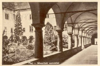Kmalu po gradnji dominikanskega samostana so gospodje Ptujski na vzhodnem robu srednjeveškega Ptuja ustanovili še minoritski samostan, ob koncu 14. stoletja pa tudi romarsko cerkev na Ptujski gori. Kot datum ustanovitve samostana se v starejši literaturi pogosto omenja letnica 1239, sedaj pa poznavalci postavljajo gradnjo v čas med letoma 1255 in 1290.