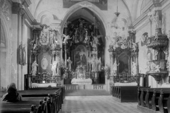 V 18. stoletju so minoriti cerkveno opremo še enkrat obnovili. Mariborski kipar Jožef Straub je leta 1752 izdelal veliki oltar in prižnico, verjetno pa tudi oba stranska oltarja. V atiko glavnega oltarja je namestil gotski kip Marije z detetom iz ok. 1300 in ga v ta namen oklesal ter na novo pobarval – danes je kip skupaj z ostanki baročnih oltarjev shranjen v samostanu.