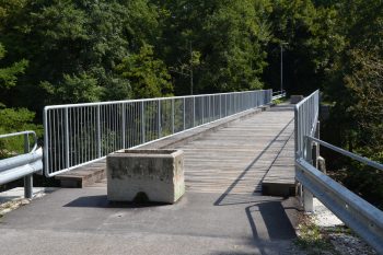 Leta 1827 so na najožjem delu kanjona reke Kokre zgradili kamnit most. Po pol leta so se kamniti bloki zvalili v reko Kokro in most se je porušil. Postavili so nadomestno leseno brv za pešce, promet pa se je spet preusmeril na hujanski most.