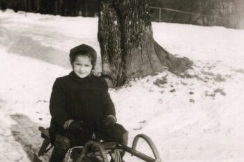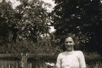 Ko se je mama tistega dne vrnila domov, je bila izmučena in kmalu je začutila popadke. V trenutku, ko je rojevala, so se na travniku blizu hiše začela obstreljevanja med Nemci in partizani. Ko so domači okoli hiše zaslišali streljanje, je babica najprej poskrbela za novorojenko, čeprav je sprva mislila, da je otrok mrtev, saj je bila tiho. Mamo so skrili pod posteljo v spalnici, otroka pa odnesli v shrambo v spodnjem nadstropju med krompir in čebulo. Ko je nevarnost minila, je malo dete zajokalo in šele takrat so spoznali, da je deklica živa. O shrambi, kjer je preživela prve ure svojega življenja, je kasneje velikokrat sanjala. Sanjala je veliko sobo, polno pridelkov, še posebej se spominja krompirja. Na prvih slikah, ki jih je javno razstavljala kot slikarka, je bil osrednji motiv ravno krompir.