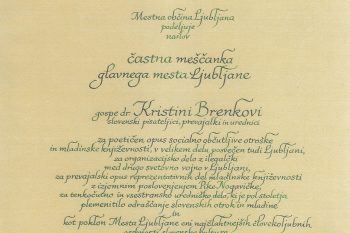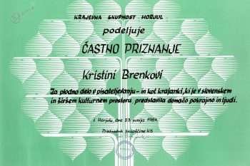 Za svoje delo je Kristina Brenkova prejela številne nagrade in priznanja, med drugim: Zlato plaketo za literarno ustvarjanje (Beograd 1966); Bronasto odličje v Leipzigu (1971); Levstikovo nagrado za knjigo Deklica Delfina in lisica Zvitorepka (1972); Kurirčkov kipec (1974); Trubarjevo plaketo (1982); Častno priznanje Krajevne skupnosti Horjul (1984); Častni znak svobode Republike Slovenije – za življenjsko delo v mladinski literaturi in založništvu (1997); Levstikovo nagrado za življenjsko delo (1999).