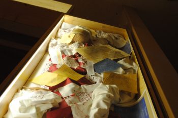 Razstavo smo pripravili člani skupine Klinčki in kušinčki iz Kulturnega društva Kalunca ter Zavod Štrekljeva domačija v sodelovanju z osnovnimi šolami iz Dutovelj, Komna in Sežane ter slovenskima kulturnima društvoma Lipa iz Bazovice in Tabor z Opčin. Prvič je bila postavljena 11. junija 2016 v Štrekljevi domačiji v Gorjanskem, tudi kot del programa Svetovnega čipkarskega kongresa 2016 v Ljubljani, kasneje pa je obiskala še veliko krajev po Krasu. Nazadnje je gostovala v knjižnici v Komnu, od koder je prišla pobuda za objavo na Kamri.