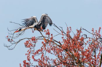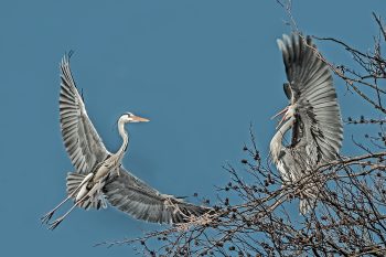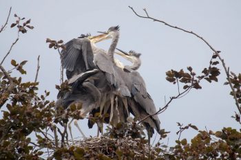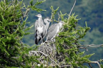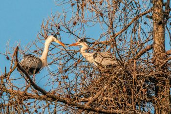 V centru Škofje Loke sta začeli v aprilu 2016 gnezditi dve družini Sivih čapelj. V prispevku spremljamo grajenje gnezda, parjenje, valjenje, rast in hranjenje mladičev.