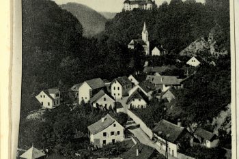 Bila sem tudi spodaj, ali pravilneje rečeno na sosednjem hribu, kjer je stal stari grad Leskovec[2] z mavzolejem[3] pesnika iz rodu Auerspergov, in spoznala duhovito in plemenito mislečo drugo ženo Friedricha von Gagerna, pa tudi slikarja Hansa von Gagerna, tako da sem domov odnesla veliko novih vtisov.