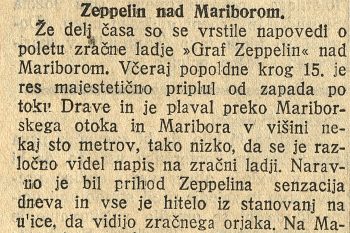 “Že delj časa so še vrstile napovedi o poletu zračne ladje »Graf Zeppelin« nad Mariborom. Včeraj popoldne krog 15. je res majestetično priplul od zapada po toku Drave in je plaval preko Mariborskega otoka in Maribora v višini nekaj sto metrov, tako nizko, da se je razločno videl napis na zračni ladji. Naravno je bil prihod Zeppelina senzacija dneva in vse je hitelo iz stanovanj na ulice, da vidijo zračnega orjaka. Na Mariborskem otoku, kjer je bilo na tisoče kopalcev, pa so ga ti seveda navdušeno pozdravljali. Zračna ladja je krenila nad Mariborom v severno-vzhodno smer proti Radgoni,” je prelet opisal Mariborski večernik Jutra.