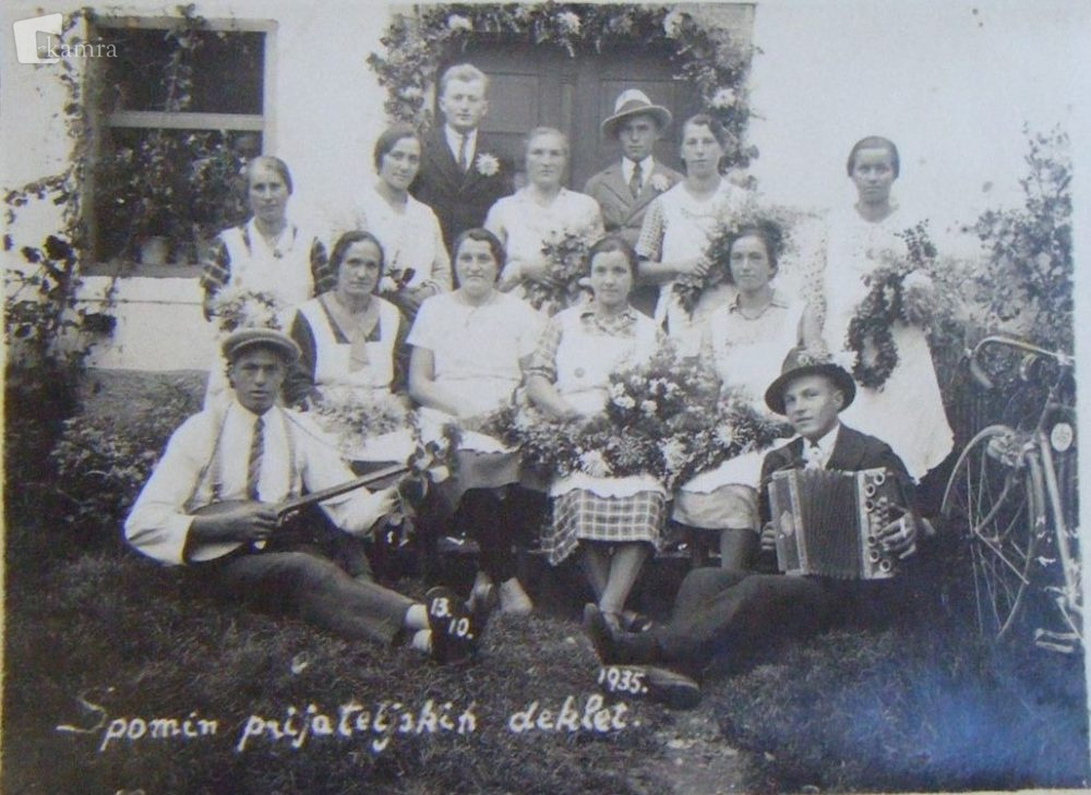 Prijateljevanje mladih v Prelski pri Velenju leta 1935 Album of Slovenia 08.12.2015 09:06 published by Janez Osetič Desno pri vratih pri fantu s klobukom je moja stara teta Nežika Kroflič (1915-2003), ki je bila pred in po drugi svetovni vojni ena glavnih cerkvenih in ljudskih pevk v Vinski Gori pri Velenju. Photo FacebookXPinterestLinkedIn Natisni Natisni brez slik