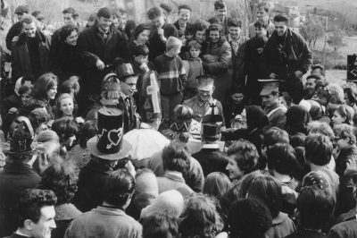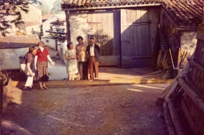 Na fotografiji so taborniki na Rjavki (del Božakovega), katerim je družina Črnugelj dovolila, da bivajo na njihovi posesti in uporabljajo zidanico za shranjevanje in kuhinjo. Na fotografiji Anton Črnugelj (roj. 1928) drži svojega sina Antona Črnuglja (roj. 1968). Fotografija je nastala leta 1969. Vodja tabornikov sta bila Henrik in Maks. Fotografijo so kasneje družini poslali v zahvalo.