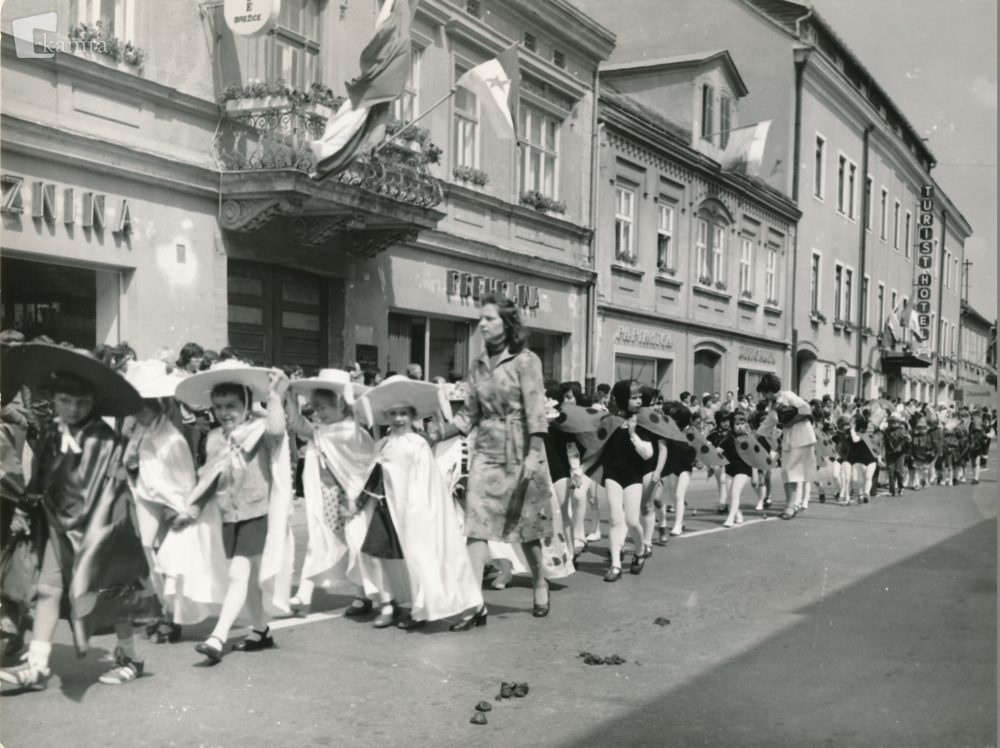 Fotografija prikazuje povorko “Cvetje in mladost” leta 1976 v Brežicah. Povorka je potekala vsako leto v mesecu juniju v okviru Brežiške pomladi. Sodelovala so različna hortikulturna društva, folklorne skupine, taborniki, krajevne skupnosti, delovni kolektivi in osnovne šole, vanjo pa se je redno vključeval tudi vrtec. Ta je vsako leto določil temo, za katero je šivilja skozi celo šolsko leto šivala obleke za otroke , ki so jih vzgojiteljice nato okrasile. Tema v letu 1976 je bila “Štirje letni časi”. Hortikultura 76 – Brežiška pomlad je potekala med 4. in 7. junijem 1976. Poleg omenjene povorke je potekala razstava cvetja, različna tekmovanja (v vezanju šopkov, v aranžiranju ikebane, v risanju cvetja na asfaltu) in predavanja.