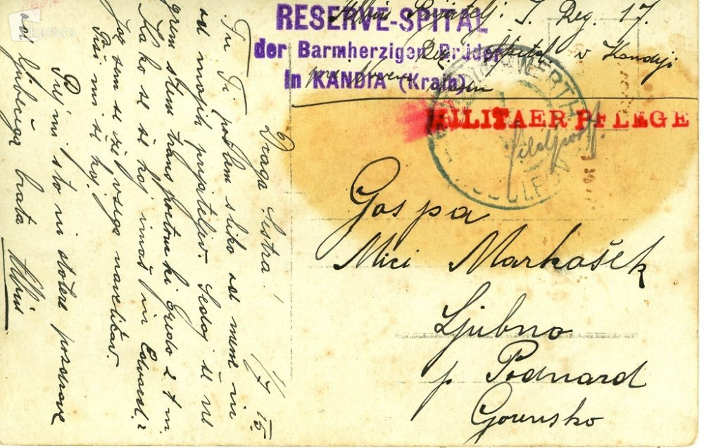 Vsebina: Zadnja stran razglednice s fotografijo soborcev