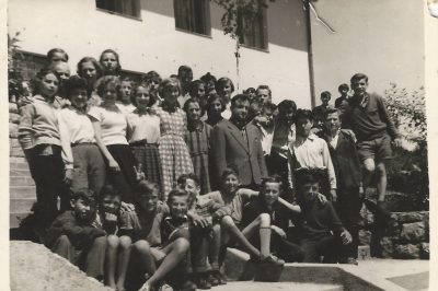 Hortenzije so pozneje očitno presadili, saj so še desetletja rasle, in to ne v loncih, ampak v zemlji pred hišo, ki je v ozadju tega posnetka. Danes je ni več. Avtorice posnetka, njenih staršev in otroka na fotografiji tudi ne. Mlajši moški, njen mož, še živi. Za hortenzije pa nisem povsem prepričana, bom pogledala.