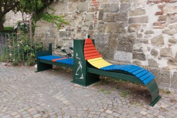 The fifth unique artistic bench is named “Imprints of Time” and is located by the Water Tower on Lent in Maribor. Its creators are the Forbici family members: academic painter Jernej Forbici, academic painter Marika Vicari, and artistic director Vladimir Forbici. The bench is made of metal and wood. The ceremonial unveiling took place on 11 December 2015.