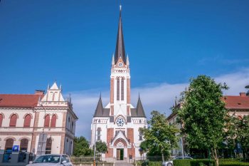 Prvotne težave glede zemljišča je rešil krčmar Janoš Kohler, ki je kupil zemljišče v najlepšem delu mesta in ga takoj naprej prodal evangeličanskim vernikom. Ti so obstoječe gumno prezidali, si uredili molilnico in poklicali kaplana. Naslednji podvig je bil nakup sosednje hiše z zemljiščem, kjer so leta 1892 sezidali evangeličansko šolo in poklicali učitelja-kantorja. In potem samostojna cerkvena občina leta 1900 kot osma po vrsti, medtem pa so že skrbno zbirali sredstva za gradnjo cerkve. Najprej je bilo leta 1907 zgrajeno župnišče, leta 1909 položen temeljni kamen za cerkev, že v naslednjem letu pa je stala tudi cerkev v novogotskem stilu, prav tako je bila molilnica prezidana v šolo z dvema učilnicama.