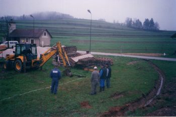 Ekipa pod vodstvom Srečka Eržena je zagnano in vestno podirala smreke in jih vozila v gasilski dom, od tam pa v žago Deu v Mokronog, kjer je potekal razred lesa ter zaščita z nadstreški. V letu 2004 so izbrali izvajalca del in na veliki ponedeljek začeli z izkopom za temelje. Delali so skoraj vsak vikend. Po končanih temeljih so navozili pesek in ga pripravili za temeljno ploščo. Nato so začeli s pozidavo sten, opažali ploščo in notranje stopnice. V petih mesecih so s 5000 prostovoljnih ur članov zgradili dom.