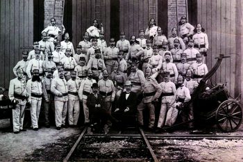 Industrijsko gasilsko društvo je bilo ustanovljeno leta 1876, zelo verjetno pa je neka oblika obrambe pred ognjem bila organizirana že pred formalno ustanovitvijo. Do ustanovitve društva je bila naloga gasilskih čuvajev v delavnicah predvsem preprečevati požare, saj za učinkovito posredovanje še niso bili primerno izurjeni. Ob morebitnih požarih so na intervencijo poklicali takrat že nekaj let delujočo gasilsko enoto Maribor mesto. Ustanovitev prostovoljne požarne brambe v delavnicah leta 1876 je temeljito spremenila organizacijo požarnovarstvene službe. Dolžnosti čuvajev so prevzeli prostovoljni gasilci, ki jim je predsedoval predstojnik delavnice, v posameznem oddelku (v začetku so bili štirje) pa je bilo sedem gasilcev, ki jih je vodil brizgalni mojster. Upravljali so samo z dvema ročnima brizgalkama na kolesih ter drugo manjšo gasilsko opremo. Prve uniforme in čelade so pridobili šele leta 1916.