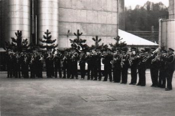 Ker je praznovanje stoletnice leta 1971 bilo pomaknjeno v skorajšnjo sto desetletnico, slednje niso posebej obeležili. Zato pa je bilo bolj veselo ob sto dvajsetletnici leta 1982, ko so pripravili slavnostni koncert. V tem letu je v skladu s takratno modo godba združila skupaj z drugimi društvi in skupinami pod okrilje KUD Svoboda Laško. Kot so zapisali v jubilejnem zborniku desetletje kasneje, sprememba naslova sama po sebi ni prinesla nič posebnega, se pa je veliko bolj obrestoval umik izpod skupne »Svobodine marele« pod okrilje podjetja Pivovarna Laško, kar se je zgodilo maja 1985.