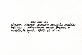 Obstoječih 170 m2 so nadomestili sodobni prostori površine 410 m2. Največ zaslug za novo domovanje knjižnice lahko pripišemo prizadevnosti predsednika IO KS Brežice Mitje Guština, ki je ob združitvi sredstev solidarnosti Republiške kulturne skupnosti in samoprispevka vseh prebivalcev občine Brežice dosegel, da je knjižnica dobila nove in večje prostore. Na policah nove knjižnice je bilo več kot 23.000 knjig (Šebek, 1984). Pri selitvi knjig so pomagali dijaki šolskega centra Brežice.
