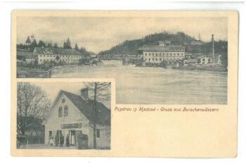 Razglednice iz različnih zornih kotov prikazujejo pogled proti Verju, pod katerim se je nahajala papirnica v Medvodah. Na večini razglednic lahko opazimo, da so se objekti papirnice nahajali na obeh obrežjih Save, povezava med njima pa je bil jekleni most.