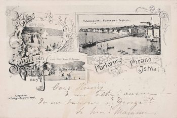 Napisi na razglednicah so ali v italijanskem jeziku ali pa dvojezični, v italijanskem in nemškem jeziku. Motive za razglednice so prispevali različni fotografi, njihova imena so na razglednicah napisana zelo redko, prav tako je redko naveden datum izdaje razglednice, še redkeje se nam posreči ugotoviti dejansko leto fotografskega posnetka, sicer pa poskušamo oceniti čas nastanka razglednice. Pogosteje je napisan izdajatelj oziroma založnik. Med založniki, ki so delovali v Piranu, so na razglednicah najpogosteje navedeni npr. Lorenzo Novak, M. Cattai, Ettore Bartolomei, Pietro Brazzatti, Italo Fonda, F. Comisso itd., med ostalimi pa Stengel & Co. – Dresden, Saul David – Trieste, Atelier Flora – Pola, Roberto Ulrich – Portorose, ki je največkrat napisan na razglednicah Portoroža tudi kot fotograf, itd. Založnikov je bilo veliko, še posebej v obdobju, ki mu pravimo zlata doba razglednic – od leta 1897 do konca prve svetovne vojne.
