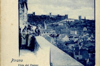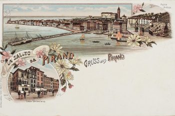 V času, predstavljenem na razglednicah, je bilo mesto najprej pod avstrijsko vladavino (1813-1918). Med drugim so v tem obdobju zgradili občinsko in sodno palačo, zasuli stari mandrač (1894), kjer je nastal večji trg, na katerem so čez dve leti postavili kip Giuseppeja Tartinija (1896), zgradili so gledališče, več palač, hiš in industrijskih objektov v smeri proti Fornačam, vzpostavili najprej trolejbusno povezavo z železniško postajo v Sveti Luciji (24. 10. 1909) in kmalu zatem tramvajsko progo (20. 7. 1912), ki je delovala do leta 1953. Tramvaj je zadnjič zapeljal po progi 31. 8. 1953. Po prvi svetovni vojni je mesto Piran z ostalo Istro pripadlo Kraljevini Italiji, uradno s podpisom rapalske pogodbe (12. 11. 1920) v mestu Rapallo (Italija) med Kraljevino SHS in Kraljevino Italijo. V tem času se je spremenila predvsem priobalna podoba mesta z utrjevanjem obale okoli mesta tako, da morje ni več segalo do hiš. Z motivov na razglednicah lahko razberemo in interpretiramo tudi starejšo zgodovino mesta, tipične beneške elemente, saj je bil Piran pod beneško vladavino dobrih 500 let (1283-1797) in spremembe v mestu iz časa prvega avstrijskega obdobja (1797-1805) ter francoske oblasti (1805-1813).