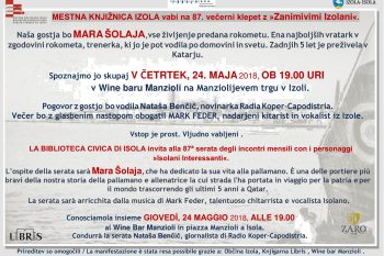 Mestna knjižnica Izola je že 87. gostila srečanje Zanimivi Izolani v samem osrčju Izole, v Wine pubu Zaro.
