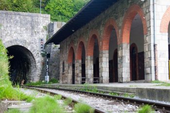 Železniška direkcija (Directorate for Railways), Plečnik’s student Vinko Glanz, and Plečnik collaborated on the design. In the end, Plečnik changed Glanz’s design and defined the form of the facade and the roof. The building is designed as a columned portico, with frontal arches corresponding to the portal of the tunnel. Plečnik used characteristic stone and bricks for a facade. In 1954, he made designs for the arrangement of a platform, but it was never realized.