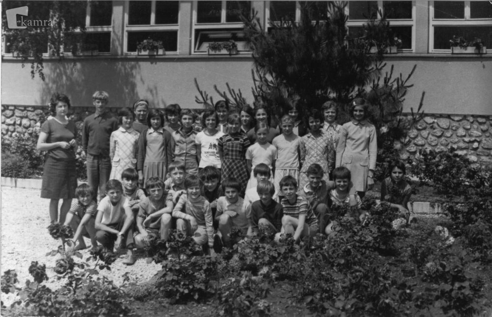 Stojijo od leve proti desni: razredničarka Elizabeta Hočevar, Vlado Kač, Erika (priimek?), Andreja Šantl, Marija Jelen, Branka Čuček, Jana Cerjan, Slavica Antlej, Bojana Ažman, Darja Mak, Jožica Vrbovšek, Nada Korošec, Mojca Kranjc, Irena Planko, Ivanka Guček, Silva Rezar, Verica Vrečar, Leonida Videc.