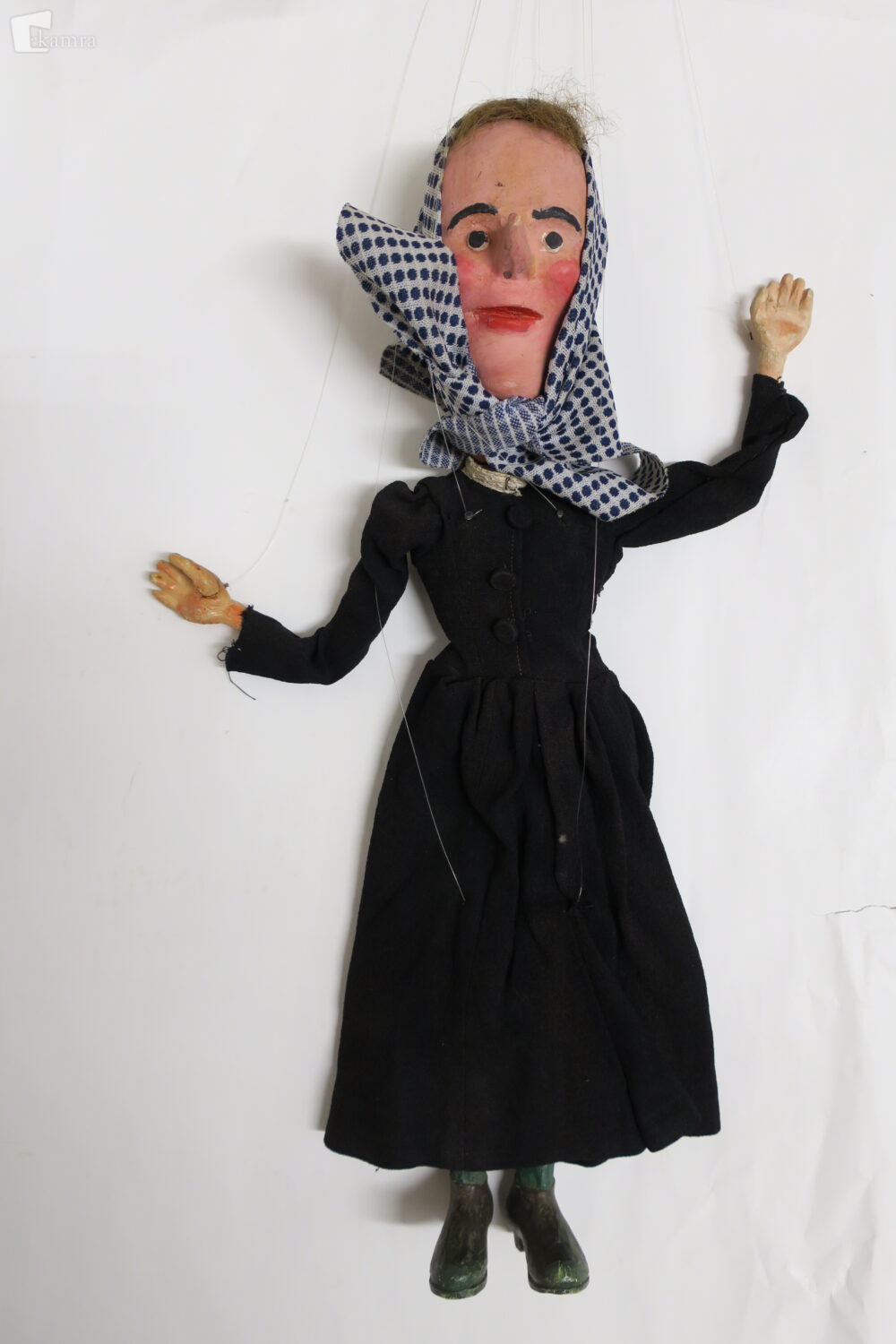 Lesena marioneta, lik babice v igri Žogica Nogica. Nosi črno obleko in pikasto črno-belo ruto okoli glave, pod ruto ji štrlijo rjavi lasje, ima visoko čelo. Dolg ošiljen nos, majhne oči, črne obrvi, rožnata lica, majhne rdeče ustnice, dolgo ozko brado. Lesene dlani so rahlo pokrčene. Črni čevlji gležnarji in zelene nogavice (pobarvano na lesene noge) se vidijo izpod krila. Avtor lutke je Matija Glad.