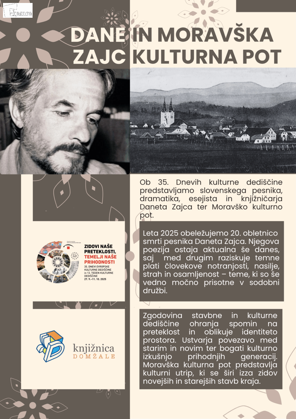 Dane Zajc in Moravška kulturna pot Multimedia element 17.10.2025 14:21 published by Knjižnica Domžale Photo FacebookXPinterestLinkedIn Natisni Natisni brez slik