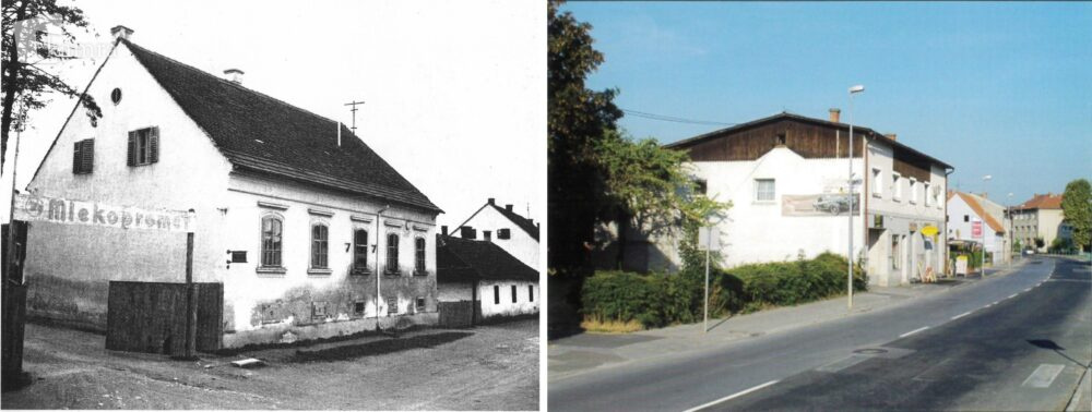 Del nekdanje Kidričeve ulice s podjetjem Mlekopromet, danes je to Slomškova ulica z novimi hišami in lokali