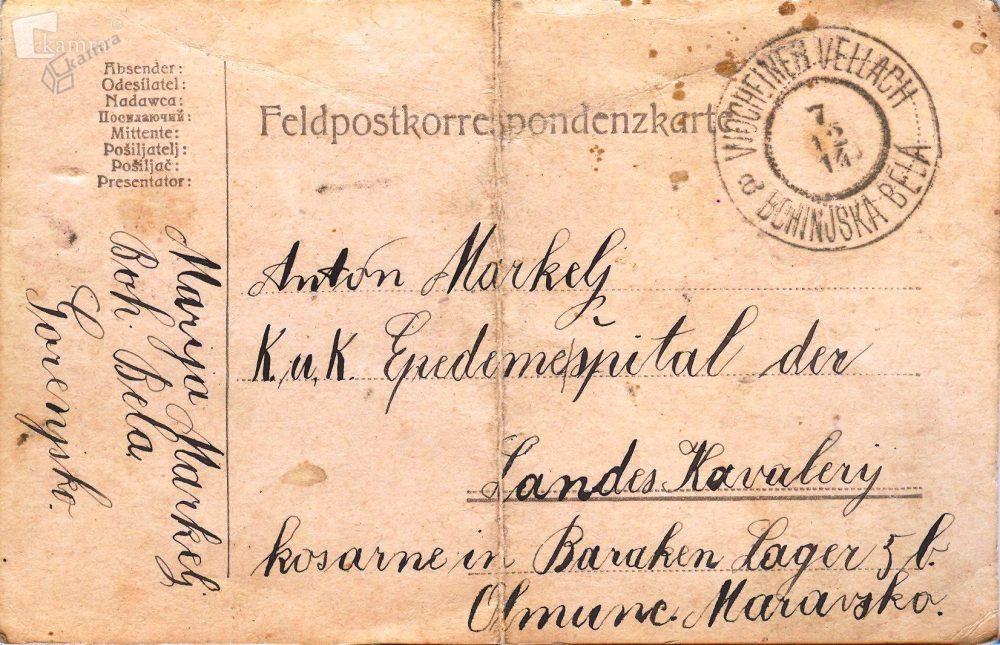 Dopisnica Marije Markelj Multimedia element 17.07.2014 09:41 published by Knjižnica A. T. Linharta Radovljica Dopisnica, ki jo je Marija Markelj pisala svojemu možu Antonu Marklju v bolnišnico na Moravsko. Photo Hrbtna stran FacebookXPinterestLinkedIn Natisni Natisni brez slik
