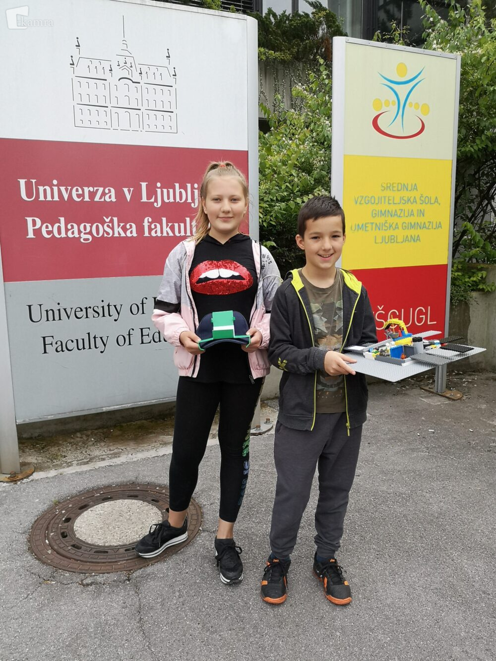 Na fotografiji desno je Staš Cencelj, ki je pod mentorstvom Alje Žekar osvojil 1. mesto v kategoriji konstrukcij iz lego kock.