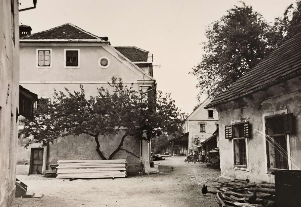 Dvorišče Maroltovine Multimedia element 13.10.2025 13:12 published by Cankarjeva knjižnica Vrhnika Dvorišče Maroltovine: na levi vogal hišterne, v središču slike – južno pročelje stanovanjske hiše, nekoliko oddaljeno – gospodarsko poslopje s hlevom za živino, na skrajni desni strani svinjska kuhinja. Photo FacebookXPinterestLinkedIn Natisni Natisni brez slik