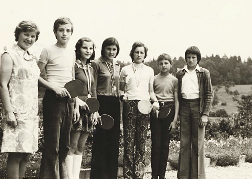 Od leve proti desni: 1. Mentorica Marija (Maja) Gerželj, 2. Dušan Lobe, 3. Milena Pukšič por. Kukovič, 4. Tatjana Godunc, 5. Vesna Oprešnik por. Kočevar, 6. Marko Lobe, 7. Bojan Šrot. (Zdenko Podlesnik, ustni vir).