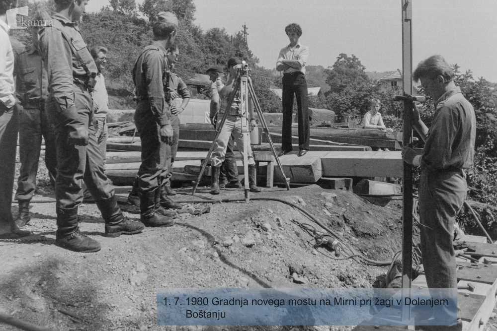 Gradnja mostu čez Mirno Multimedia element 20.11.2020 21:22 published by Knjižnica Sevnica 1. 7. 1980 – Fotografija prikazuje gradnjo novega mostu čez reko Mirno pri (nekdanji) žagi v Dolenjem Boštanju. Photo FacebookXPinterestLinkedIn Natisni Natisni brez slik