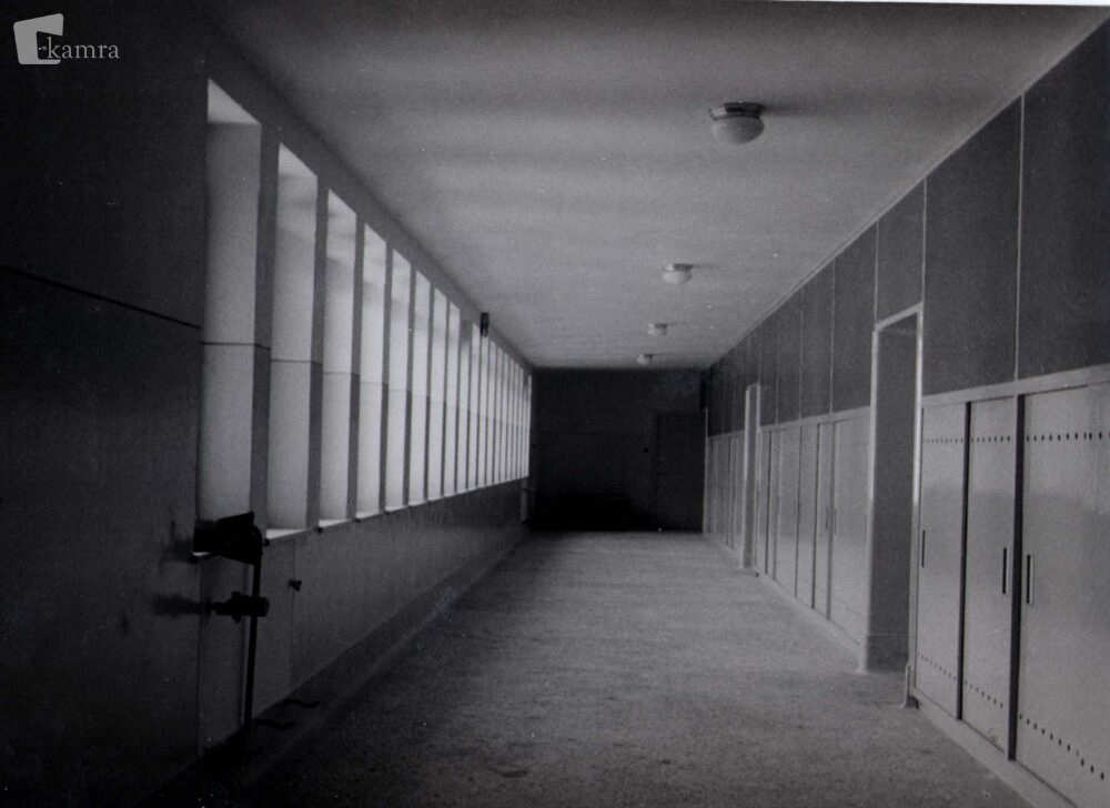 Hodnik desnega krila šole, 18. 9. 1955 Multimedia element 20.11.2025 12:45 published by Osrednja knjižnica Celje Na hodniku so bile tri učilnice, garderobne omarice in na koncu sanitarije. Photo FacebookXPinterestLinkedIn Natisni Natisni brez slik