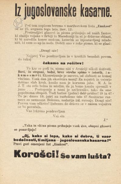 Iz jugoslovanske kasarne. Multimedia element 09.11.2011 12:31 published by Koroška osrednja knjižnica dr. Franca Sušnika Document Download document FacebookXPinterestLinkedIn Natisni Natisni brez slik