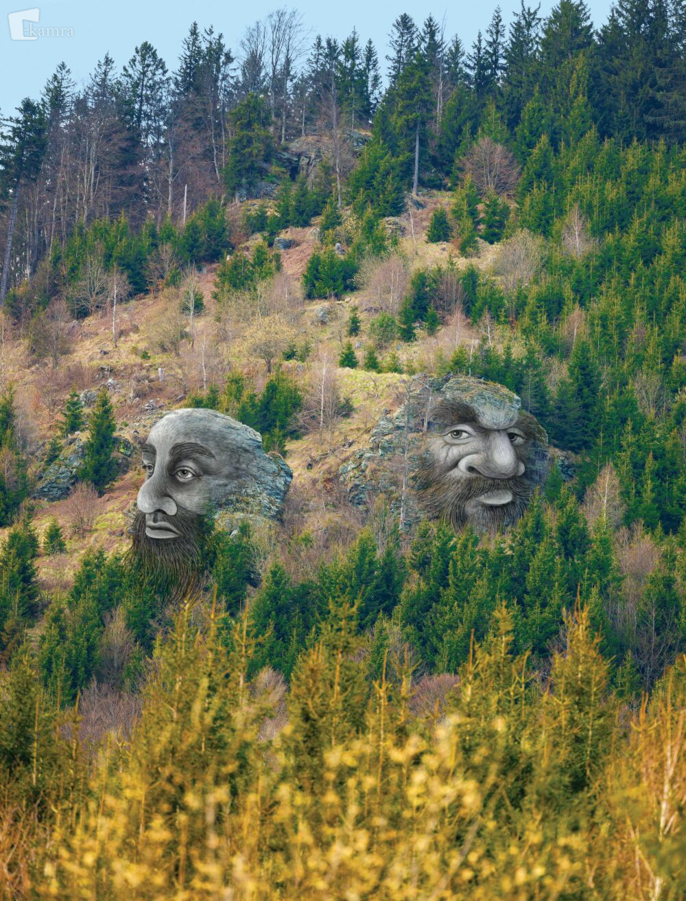 “Nazadnje sta se tako razbesnela, da sta začela rušiti vsak svoj grad in se obmetavati s skalami, skale pa so bile tako težke, da sta drug drugega ubila in njuni od skal poškodovani glavi sta ostali ujeti v skalah, vsaka na svoji strani prelaza.” (Zgodbe so še kako žive, str. 72)