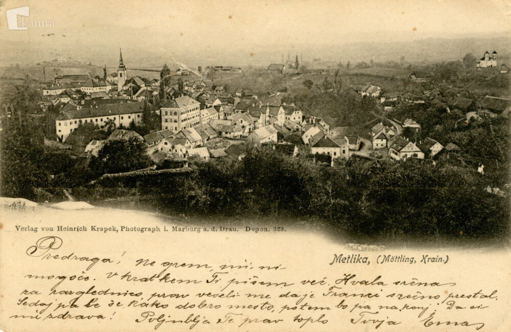 Krapkova razglednica Metlike Multimedia element 19.12.2025 09:21 published by Knjižnica Mirana Jarca Novo mesto Razglednica Metlike, delo Hinka Krapka, znanega fotografa v Karlovcu in Mariboru. Marburg a. d. Drau: Heinrich Krapek, konec 19. stoletja. Photo FacebookXPinterestLinkedIn Natisni Natisni brez slik