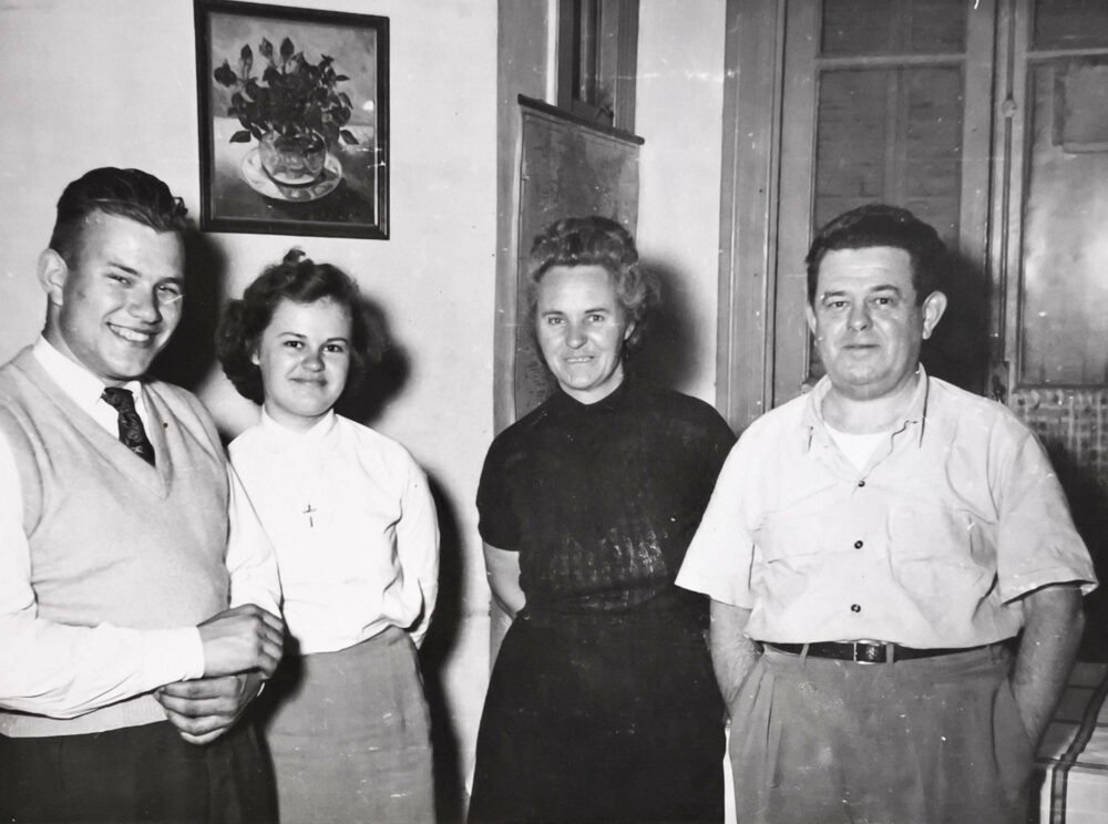 Leto 1957 Multimedia element 13.10.2025 13:12 published by Cankarjeva knjižnica Vrhnika Z leve: bodoči Maroltov zet Andrej Makek, Polona, Fani in Marijan. Photo FacebookXPinterestLinkedIn Natisni Natisni brez slik