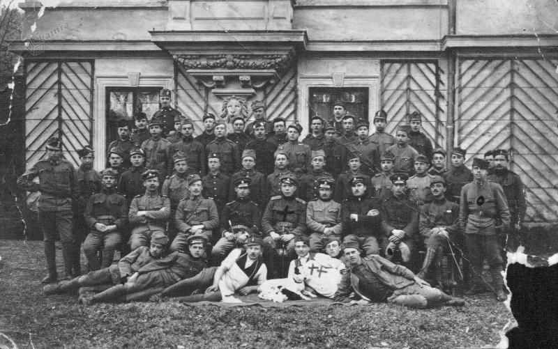 Prepis s hrbtne strani fotografije: “Del koroških borcev, slikani na gradu grofa Thurna v Guštanju. V sredini poročnik Franjo Malgaj, ki je padel na Lečnikovem hribu, spodaj pa Tone Ermenc, ki je bil zadet od nemške krogle in je padel pri Šmolaku na Javorniku pri Guštanju. Tole sliko je imel pri sebi Ermenc v levem žepu “bluze”, tako, da je šla krogla skozi to sliko.” Podpisan je Dretnik Albin.